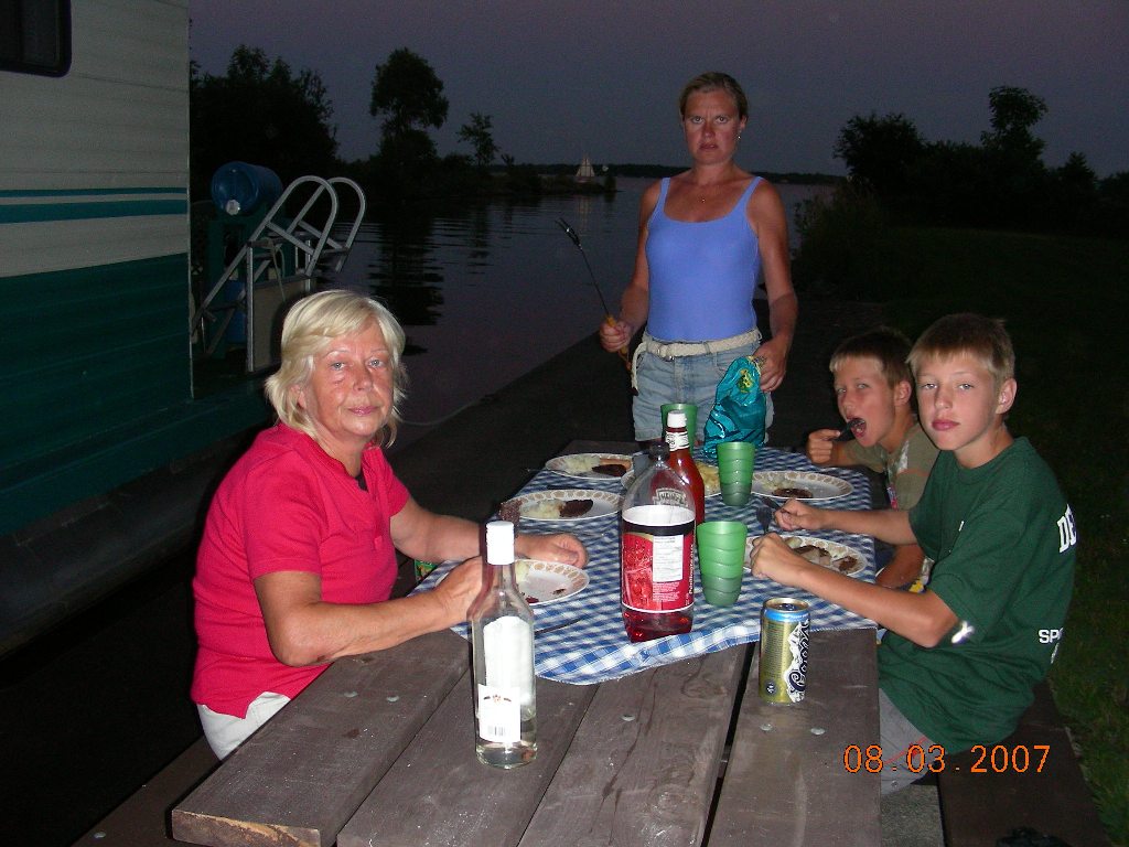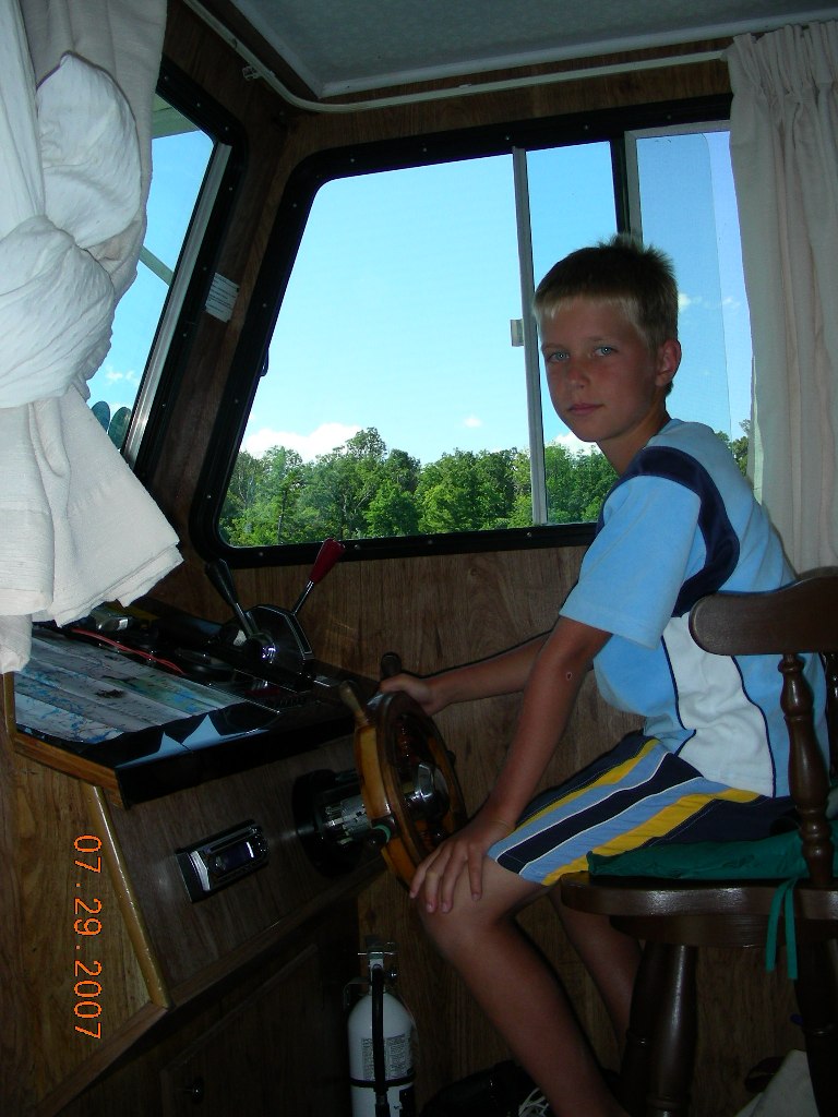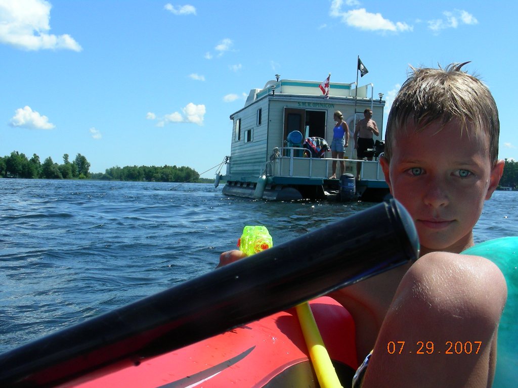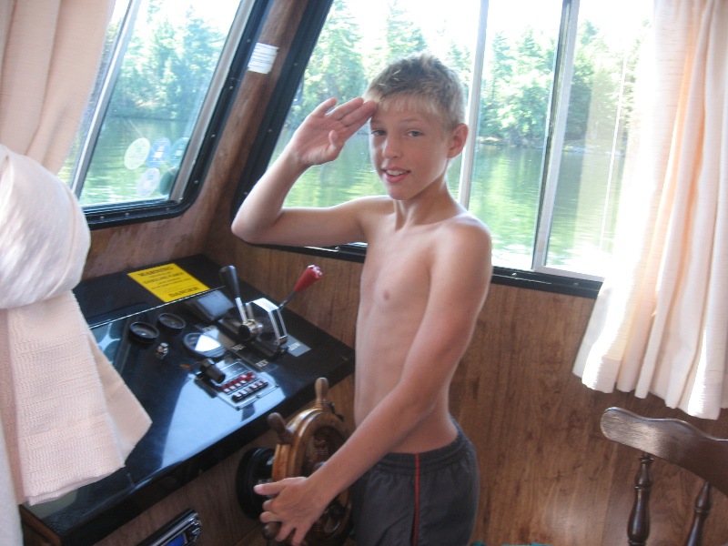 Our houseboat adventure is almost over. We all enjoyed it so much. We spent at Chaffey’s Lock. It was named after Samuel Chaffy who settled in the area in 1820 and build impressive mill complex. We woke up at 8:30am. Anton and Eugene slept until 9:00am. They complained about a storm that woke them at night. We had some of Natasha’s famous pancakes with black berry jam. We arrived at Newborough Lock at 9:30am. We also went fishing that morning. Anton caught a big bass and Eugene caught a big fish later on. Sniff we met some new friends at the lock, while we passed out at 11:30am. What a nice day it was. It is very hard to imagine that a big storm was suppose to make It rain later on in the day. Umm.. Eugene is reading a lot today. We are sailing threw the big Rideau lake, we drifted their and swam a little. Than we filled up the gas and took all the sewage out. Then we went to Poonamalie Lock. Then George realized that we forgot the stickers at the previous lock and slept there. |