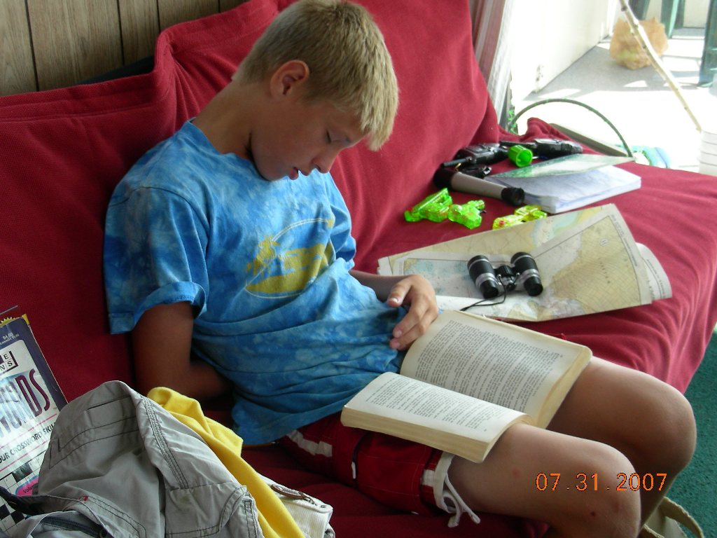 | We woke at 8:00am. We ate breakfast than we swam a little. We read a book with the captain crunch and sailed off at 9:30am. This was the last and everybody was supposed to have fun the last day. Than we went through Poonamalie Lock we swam a little there. Once we sailed off, a strong wind blew and Eugene swimming trunks blew off. Natalya swam to get them. Then we sailed on to Smiths Falls. We unpacked and we drove home. |