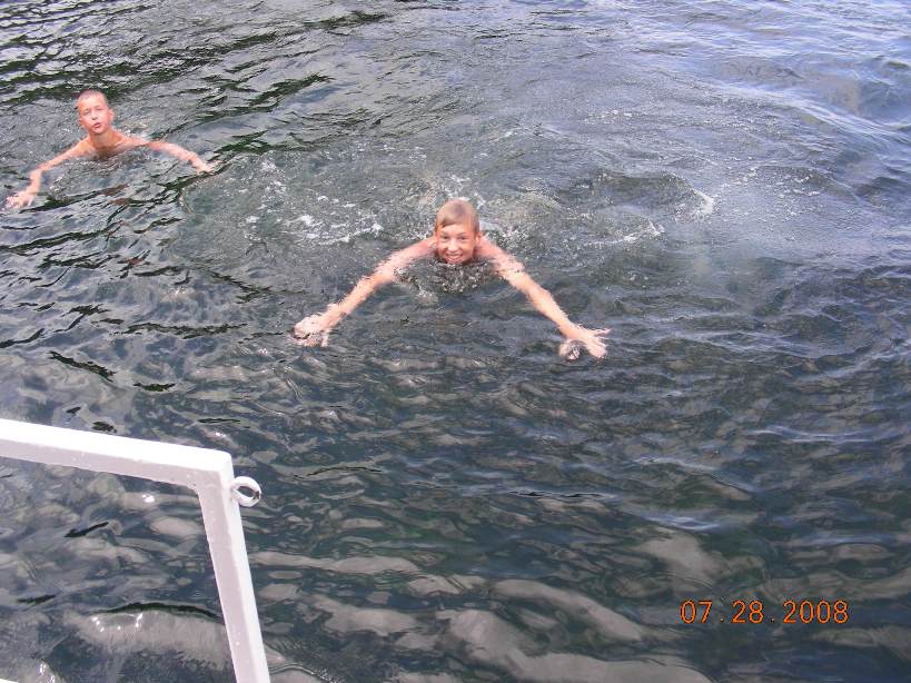 Anton and Eugene woke up with water in their pants. George had shot them with the water gun. We got ready to swim.