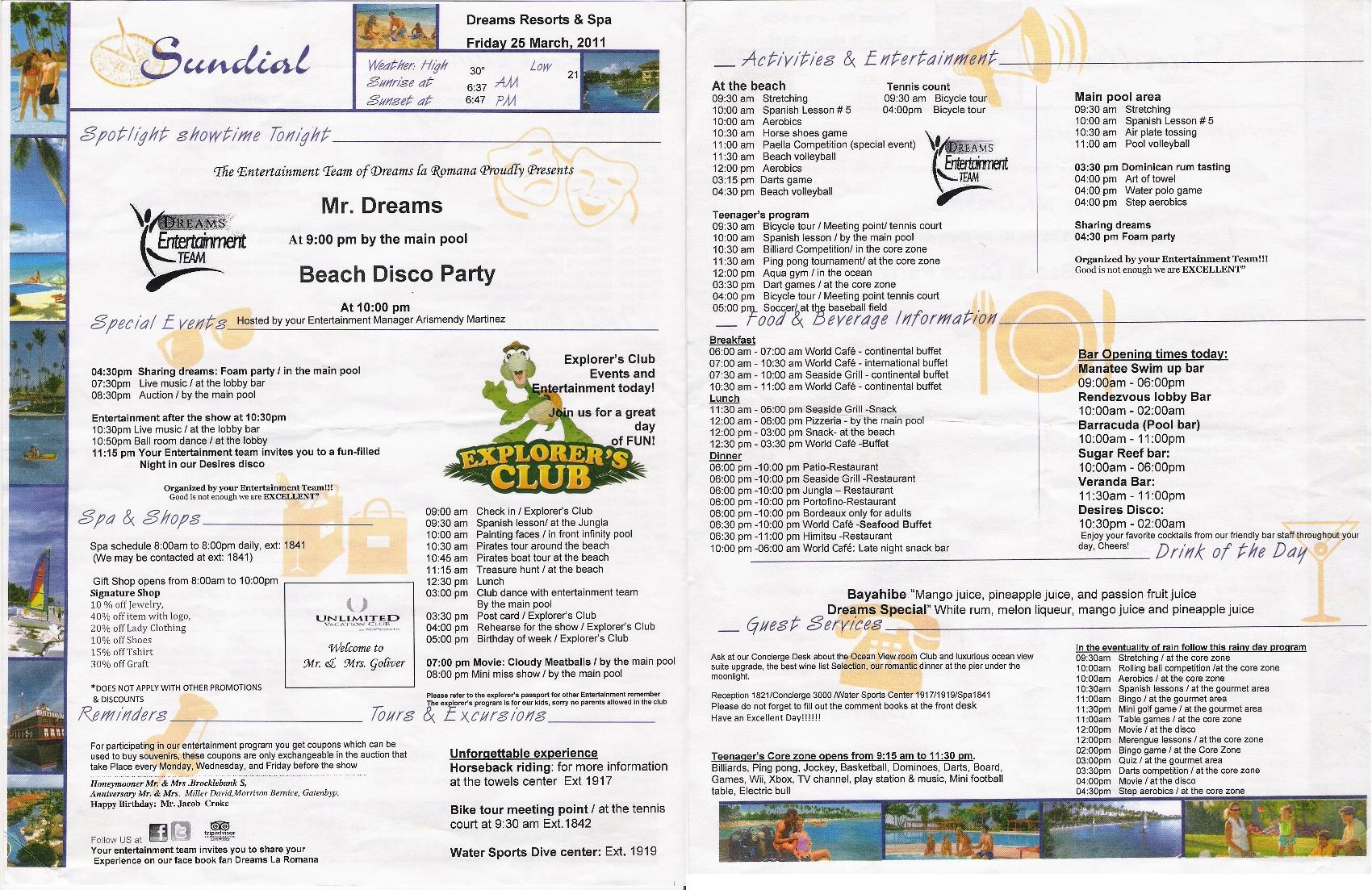 they sold future discounts for the Dreams, but we earned just 25 minutes of spa. One day we got acquainted with Peter and Svetlana, couple from NY,