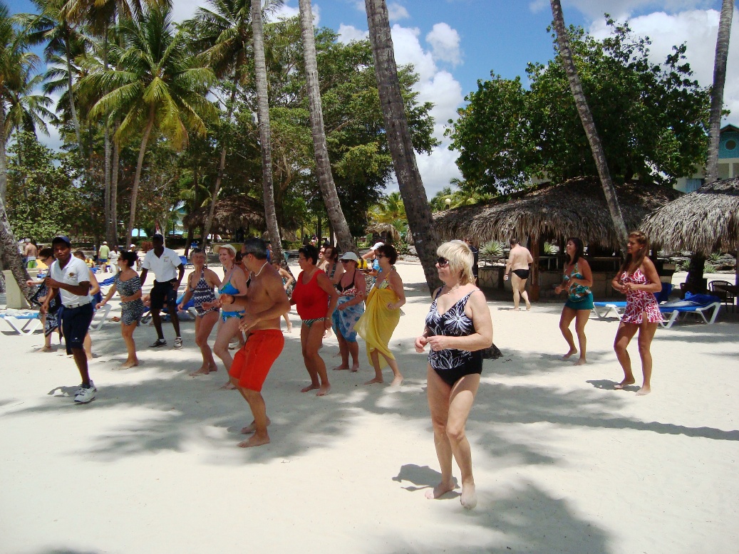Closer to noon we usually switched from aerobics to margaritas and fruits. Sun started to be annoying and we hided under the palms or tents.