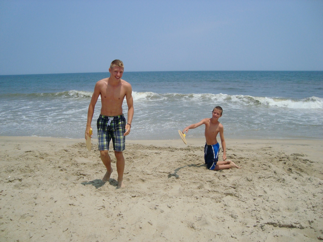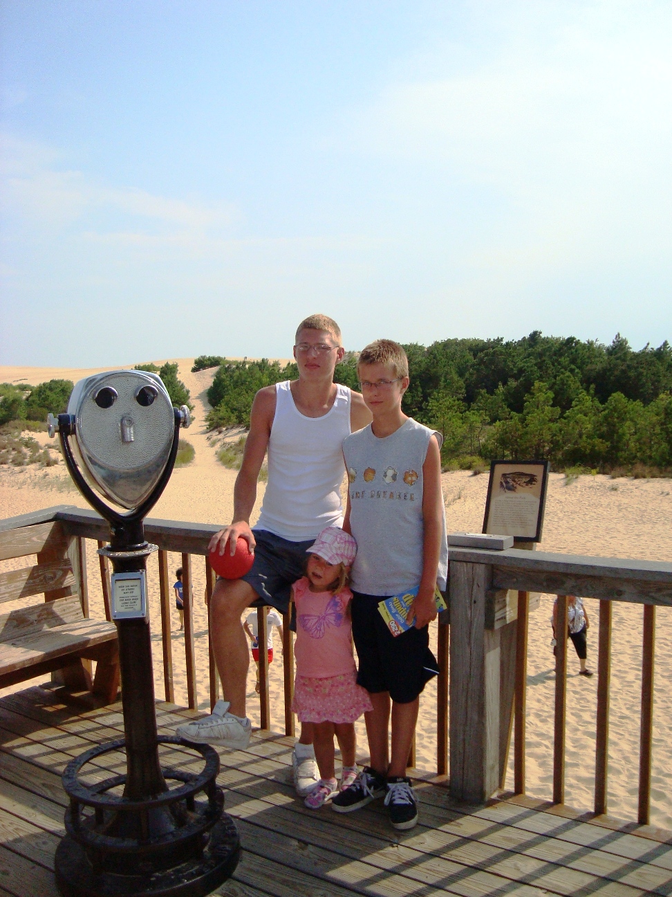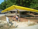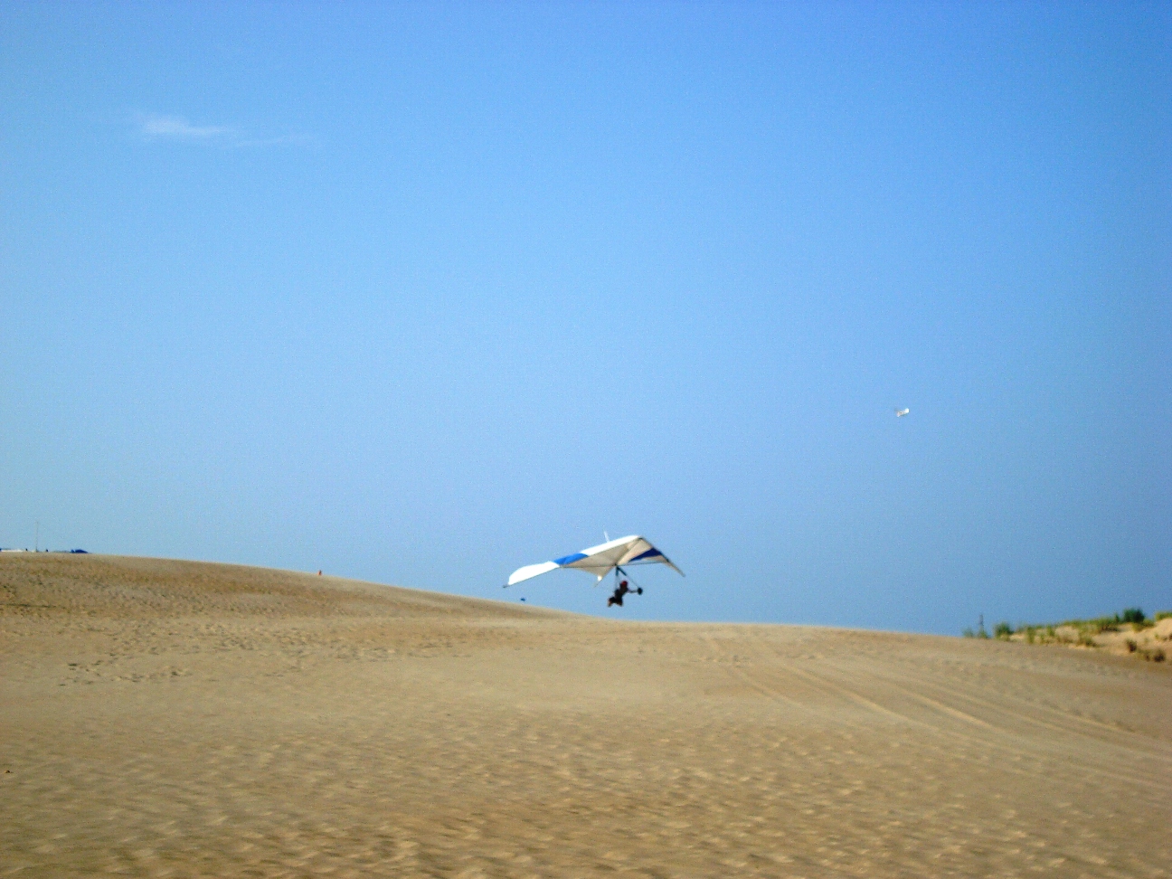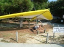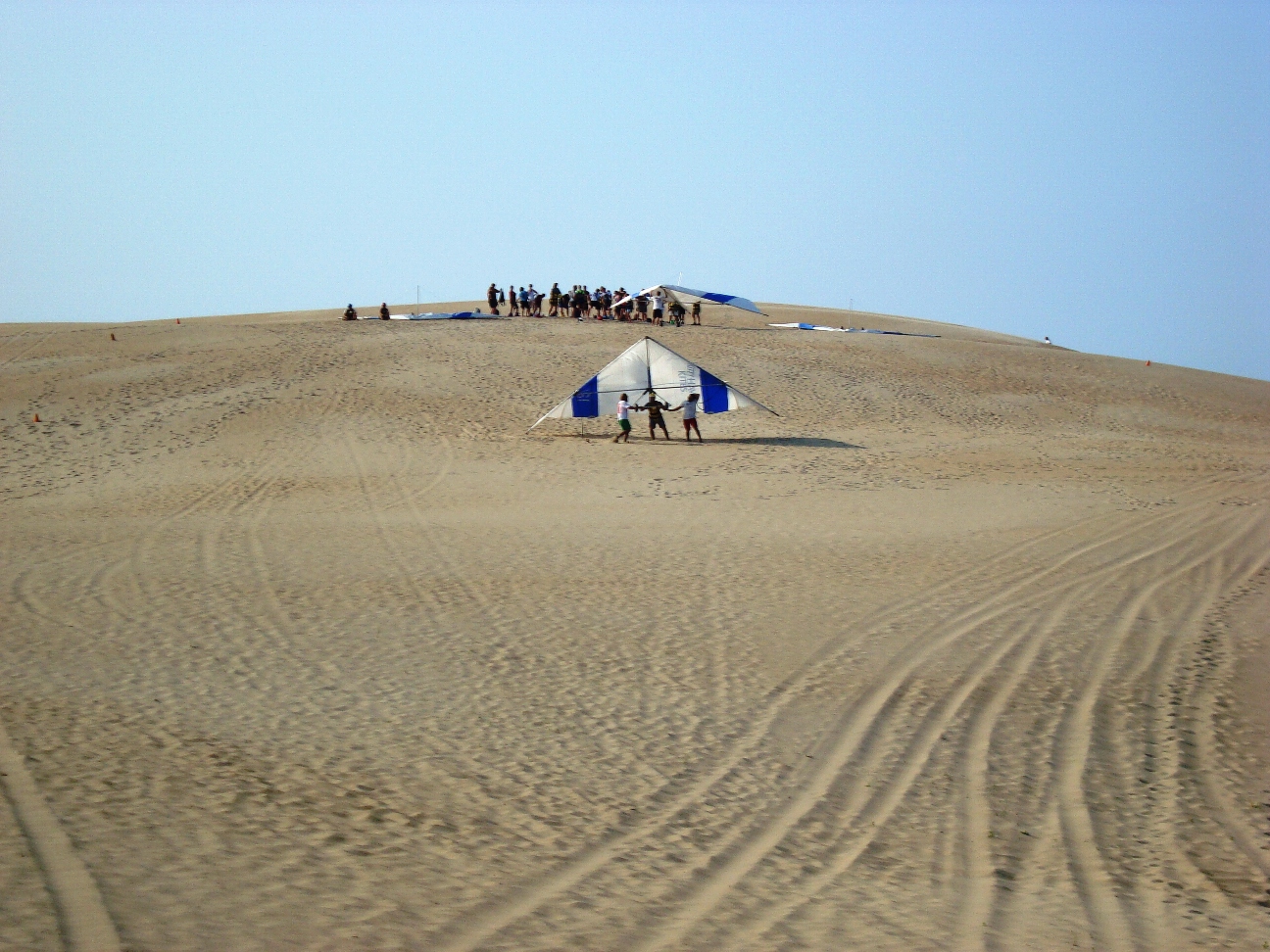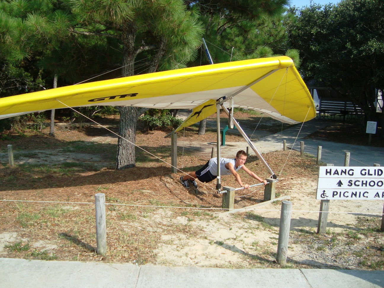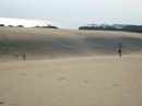 The park's visitor center features a museum about the cultural and natural history of the park, including sand dunes, plants and wildlife, weather, pirates and local maritime history. A gift shop run by the Friends of Jockey's Ridge is also located in the visitor center. The ridge area is accessed either from the back deck of the visitor center or the parking lot via a 350-foot-long (110 m) boardwalk. Kitty Hawk Kites, the world's largest hang gliding school, also provides concessionaire hang gliding lessons in the park. Their office is located directly behind the park's visitor center. We watched several unsuccessful attemts of school graduates to take off, and decided not to take their lessons. Instead we tried to build our own kite on the beach, but the results of test-flight were similar: about 8 seconds of flight. Then we remembered that first Wright Brothers' Flight lasts only 12 seconds and decided that it is not bad for us at all. |