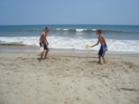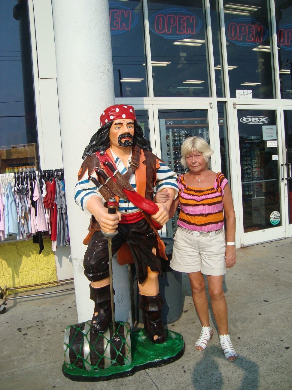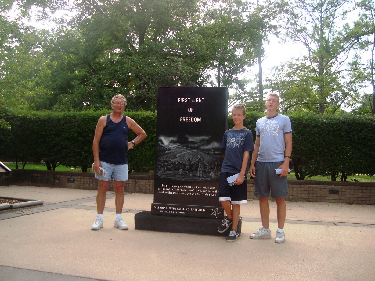 Where: Hotel Days Inn & Suites Mariner in Kill Devil Hills between Kitty Hawk and Nags Head. By car: Approximately 400 mi one way. We used Garden State Parkway to Cape May, NJ, then ferry to Lewes, DE, then Rt.13 to Chesapeake Bay Bridge-Tunnel, and then Rt.168 and Rt.158 to Kill Devil Hills, NC. History and Geography: The Outer Banks (also known as OBX) is a 200-mile (320-km) long string of narrow barrier islands off the coast of North Carolina, beginning in the southeastern corner of Virginia Beach on the east coast of the United States. The Outer Banks is a major tourist destination and is known for its temperate climate, wide expanse of open beachfront, and water activities. The Cape Hatteras National Seashore has four campgrounds where visitors may camp. We planned to visit historical Roanoke Island with its Manteo as well.