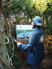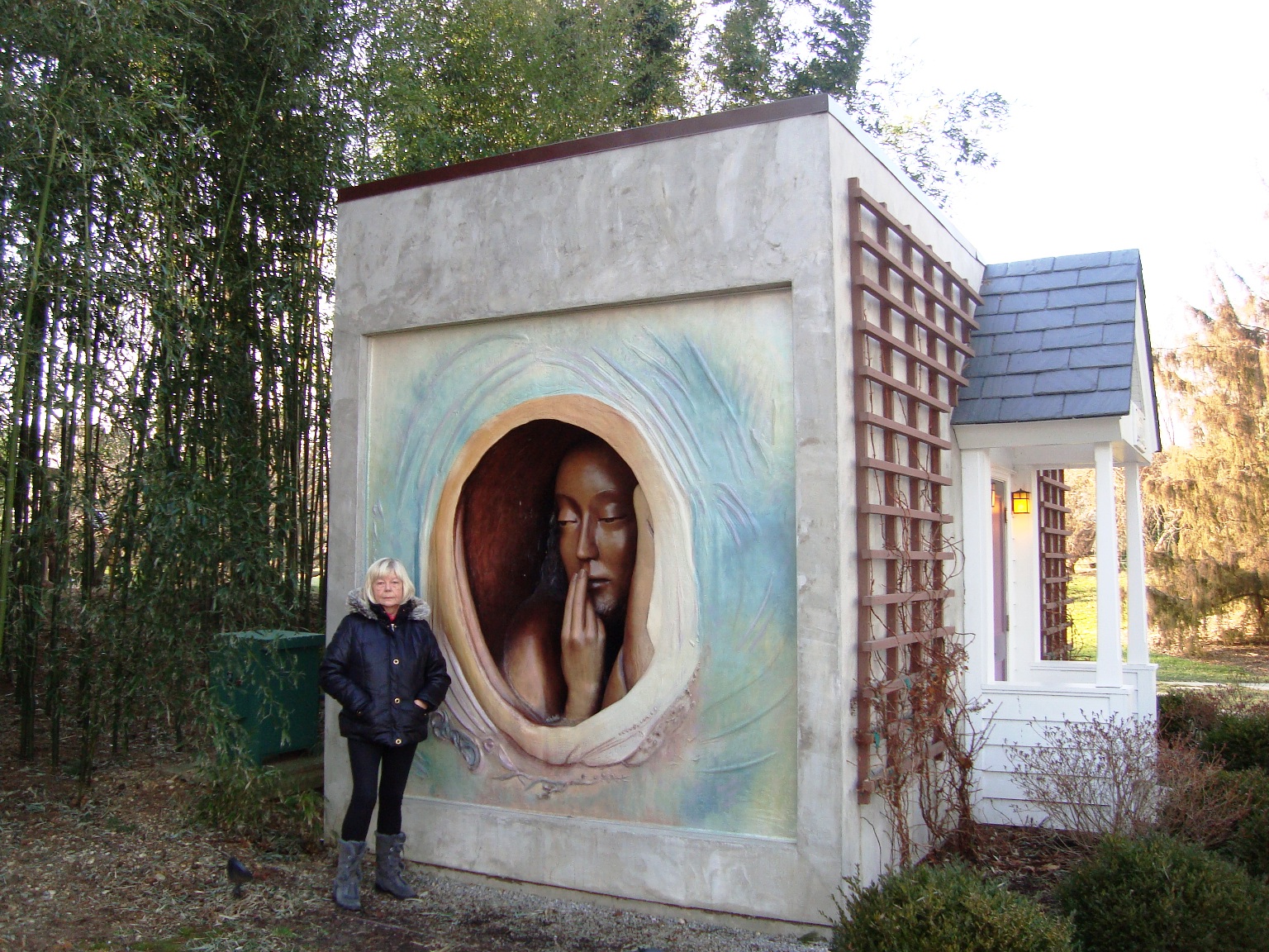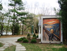as he paints the sculpture by Johnson entitled 'If It Were Time', which is in turn based on Monet’s painting entitled 'Terrace at Sainte-Adresse'.