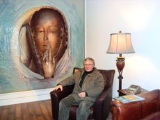 Phillip Bruno, collector and art gallery director, posed for this gentleman keeping out the party crashers.