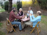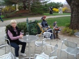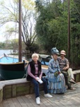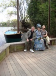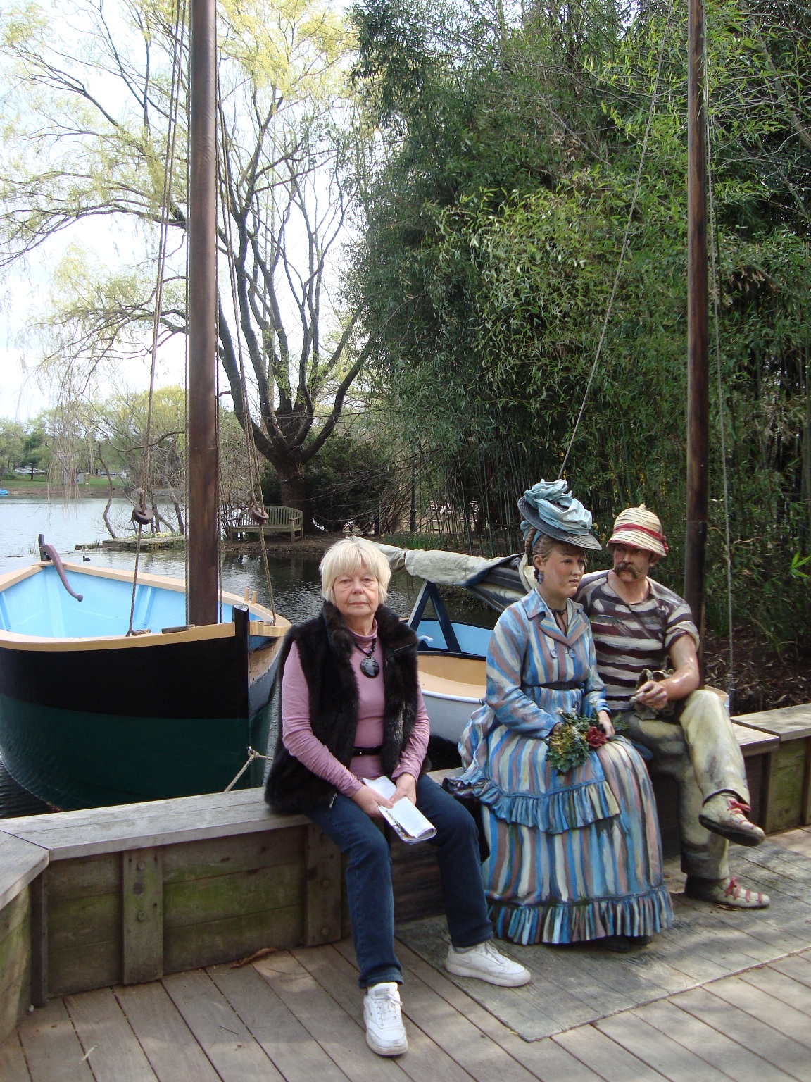 In addition to the members of the Impressionist’s boating party are four figures seated around another table at the far end of the tableau.