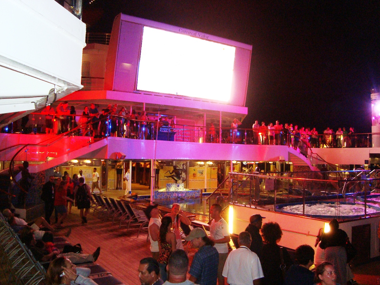 Carnival's dining program is called "Total Choice Dining." They call it that because their goal is to give as many choices as possible to their passengers. Breakfast is served in the main dining rooms, on the Lido deck or even in your staterooms (via room service). Lunch can be eaten indoors or outdoors (at a buffet), or (of course) via room service. Dinner is served in the main dining rooms, or in the Supper Club. Again, if you're feeling like a meal in your room that is possible as well. There are two main dining rooms onboard the Carnival Valor, Lincoln Dining Room and Washington Dining Room. Breakfast is typically served in the main dining rooms from 7:45 am to 9:00 am. Lunch is usually served there from 12 pm to 1:30 pm. Dinner is split up into two main seating times. The "main seating" starts at 6:00 pm, while the "late seating" starts at 8:15 pm. All dining rooms onboard Carnival are Smoke-Free. From Carnival's award-winning stage shows, casino, spa and fitness center, to their multiple dining venues, bars, lounges and various pools and whirlpools you're sure to find something that matches your desires. The huge water slide (that feeds into the Dolphin Pool) starts on Deck 14, the Sky Deck, and ends on Deck 10, the Panorama Deck. It's a very popular place for kids to hang out at throughout the day. Guests under 13 years of age must have a parent's permission to use the water slide. Certain height requirements are in place as well. Carnival's Seaside Theatre (a 12-foot-high by 22-foot-wide LED screen that shows movies, concerts and other special programming). There is a 24/7 view from the upper deck via bridge webcam and aft webcam. The spa and fitness center is located on deck 11 (the Spa Deck) and features a wide range of treatments, including various massages. The minimum age to be allowed to enter Spa Carnival and the fitness center is 12 years old. Guests that are 12 to 16 years old must be accompanied by an adult at all times. The sports deck and jogging track are also located on this deck, towards the back of the ship. Deck 5, the Promenade Deck, is one of the most popular decks onboard the Carnival Valor. This is because it's where the top level of the Ivanhoe Theater (the three-level main show room - also located on decks 3 and 4) is located, as well as the often busy Shogun Club Casino. Also on this deck are The Fun Shops of Carnival, where you can do some duty-free shopping. Popular items available in these shops are souvenirs, jewelry, alcohol and more. The video arcade and Club O2 (the teen center) are also located on the Valor's Promenade Deck. |