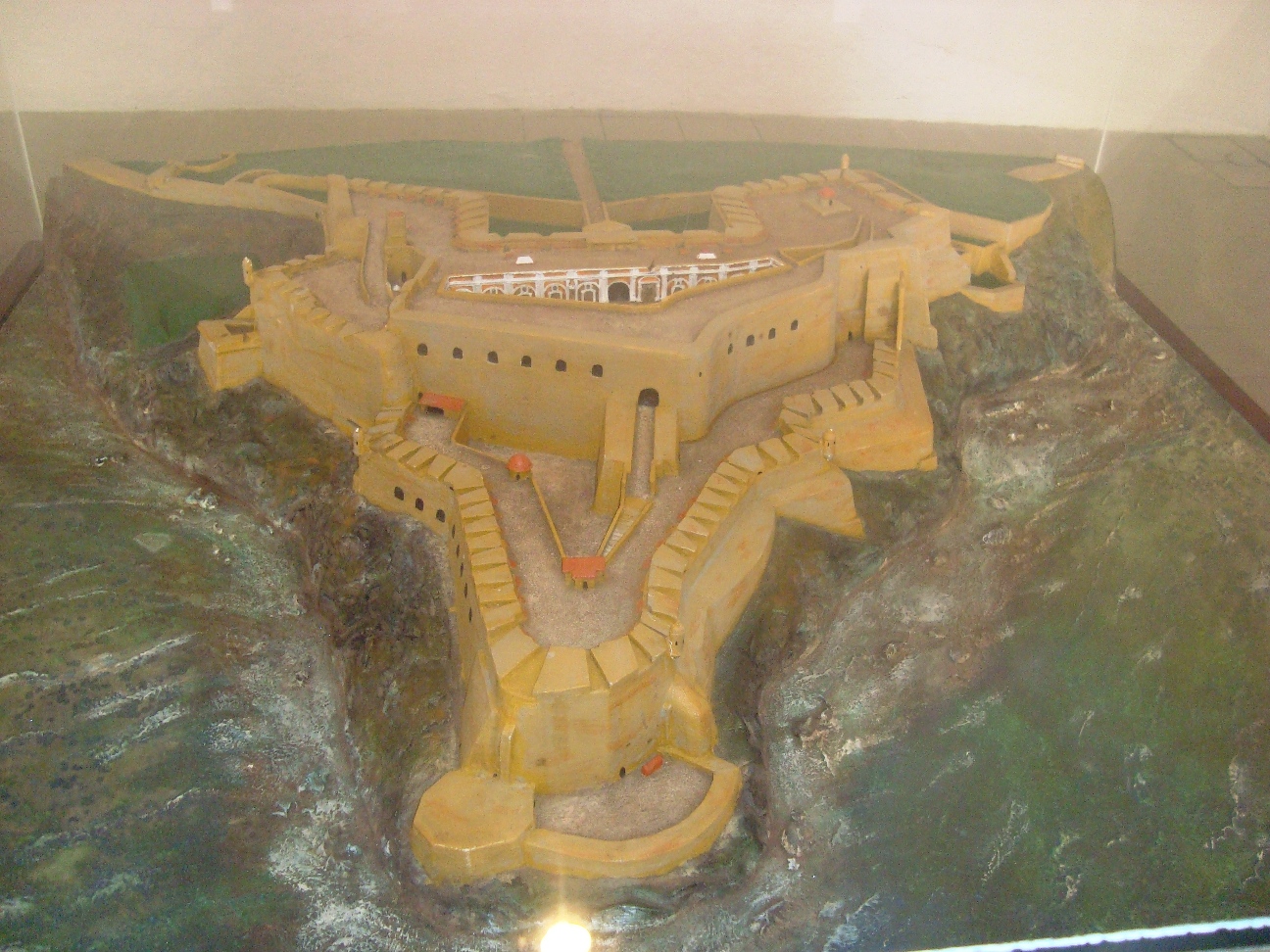 Facing the structure, on the opposite side of the bay, a smaller fortification known as El Cañuelo complemented the castillo's defense of the entrance to the bay.
