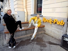 Freddie Mercury. He was known for his flamboyant stage persona and four-octave vocal range.