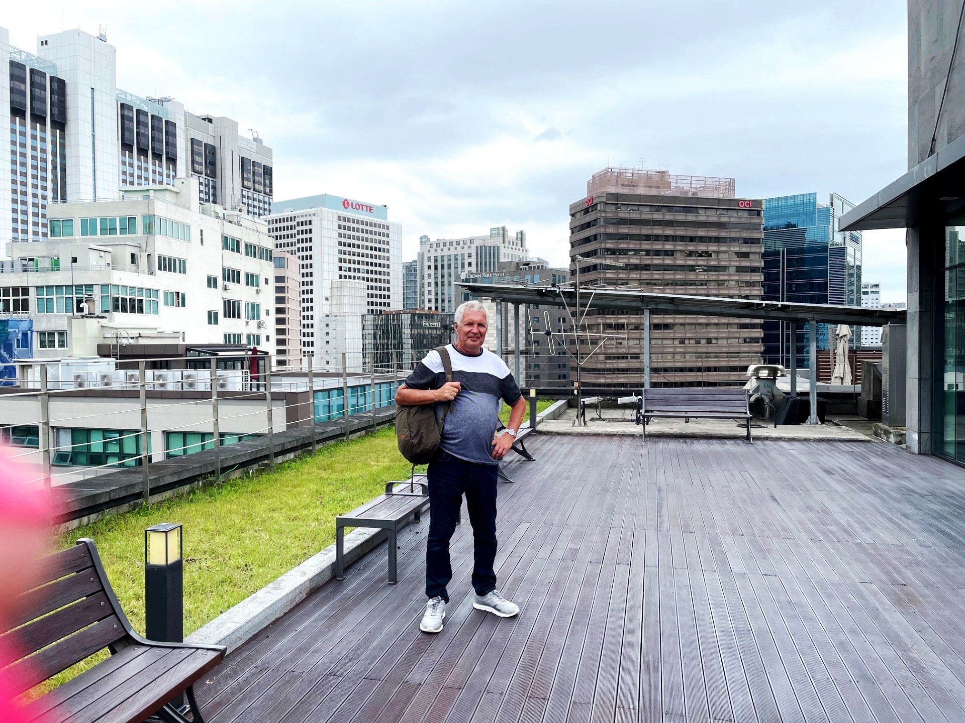 On the roof of our hotel Thomas Myeongdong (16hth floor). Reservation was made 3 weeks in advance (Superior Twin Room $85.32/night).