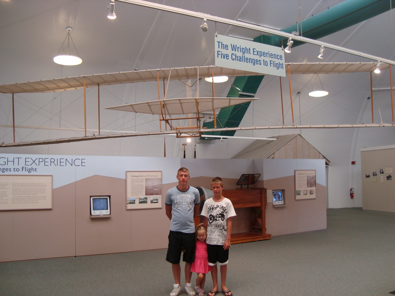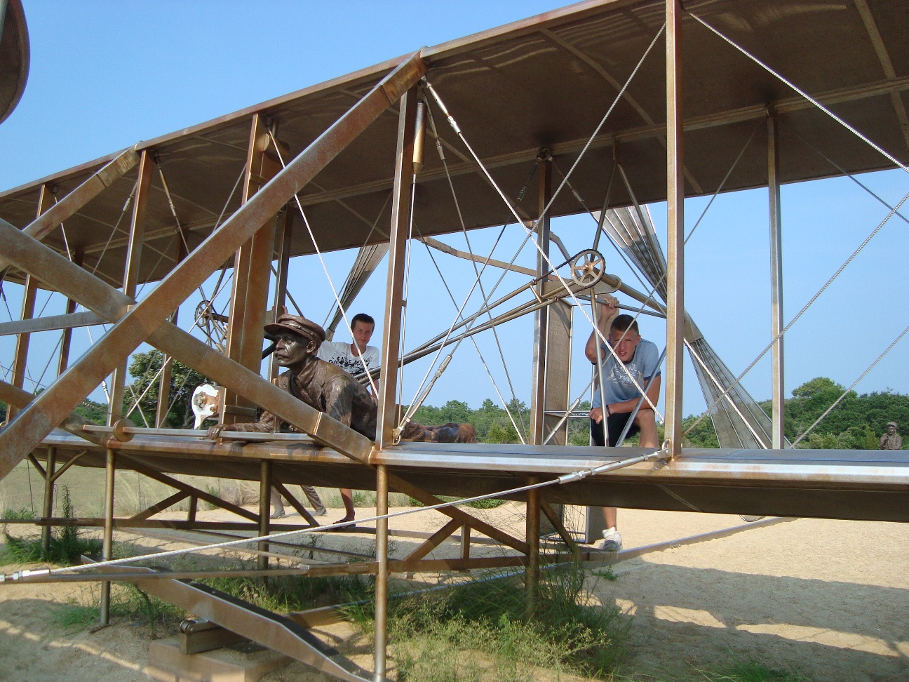 We woke up and as always; we got dressed and went to eat breakfast. We went to the beach and set up another tennis tournament. Then, again we tried to fly the kite, but still we failed. Anton suggested that we put the kite on the ground and just run as fast as we can and the kite stayed up for about 20 seconds eventually the kite broke because it crashed an awful lot of times so we put it back in its bag and forgot about it. After that Julia went to sleep and we went to the Wright Brother Memorial to see the first airplane in flight. Wilbur and Oliver Wright constructed the first airplane and they showed a replica on display and it was really cool. Their first three attempts failed, but the fourth they traveled very far. They actually showed where they started flying and where they ended flying. Unfortunatley the visitor center burned down and we didnt see the big version of the air plane. Also there was too much to see so we didn't see everything and today was our last day so we were sad. For the last time, we went to sleep in the hotel and for the first time, didn't want tomorrow to come. |